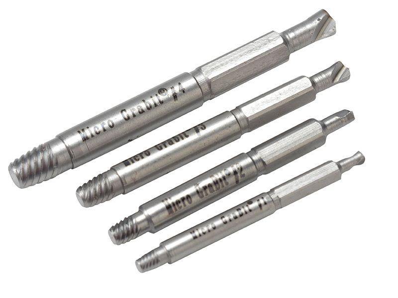 The Boa Micro Grabit® extractor is a precision instrument, designed for the electronics and precision engineering industries. It removes delicate screws and bolts in more restricted areas and the set combination will allow fast and efficient removal of all small size diameter screws and bolts. Great for fixing cameras, glasses, tech. equipment etc. Works with all standard variable drills.