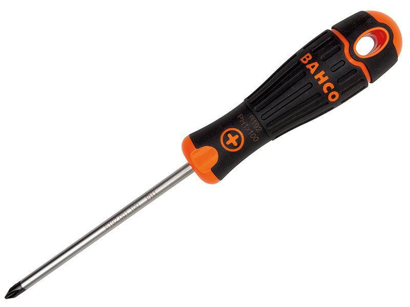 The Bahco BAHCOFIT Phillips Tip screwdrivers are suitable for Phillips head screws. They have 2-component handles with vertical grooves for comfortable grip and maximum force transmission.