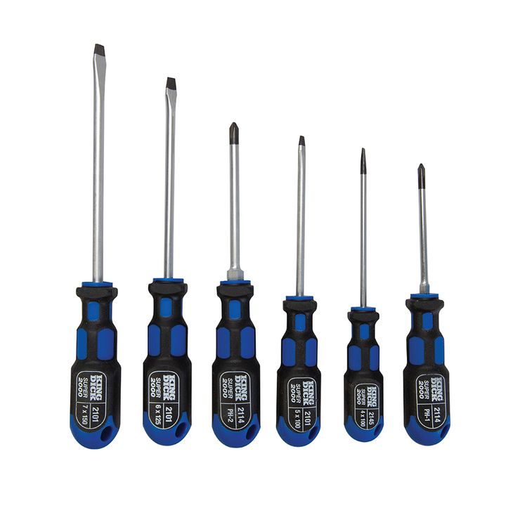 High quality blades made from hardened chrome vanadium steel for optimum performance. Matt chrome plated with blackened tips. Ergonomic Super 2000 handles provide optimum pressure and excellent power transmission with minimum user fatigue. Maximum area of tip contact reduces 'slip out' and potential damage. Includes 3 x slotted (5 x 100, 6 x 125 and 7 x 150mm), 1 x VDE slotted (4 x 100mm), and 2 x Phillips (PH1 4.5 x 80 and 6 x 100mm).