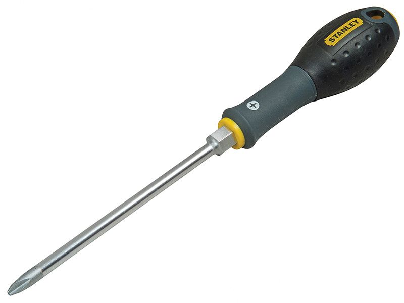 The Stanley Tools FatMax® Phillips Bolster Screwdrivers are colour coded and feature icon ID for quick recognition of tip pattern and size. They have a chrome vanadium steel bar that resists bending and snapping. The tips have been hardened for durability and precision machined for excellent head to fastener fit.