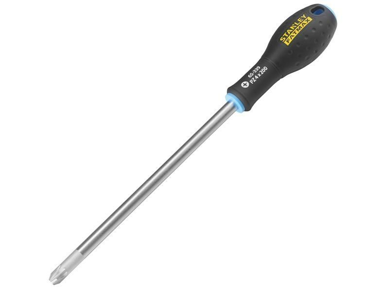 The Stanley FatMax® Pozidriv tip screwdrivers have a chrome vanadium steel bar which allows high torque and reduces the risk of tip breakage, and the handle is moulded directly to the shaft for a virtually unbreakable bond which gives long life and durability.