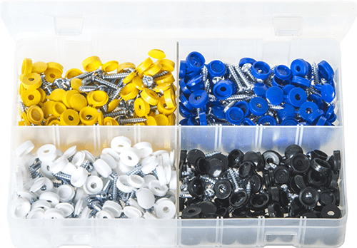 4 x Hinged Caps: White, Yellow, Black, Blue.