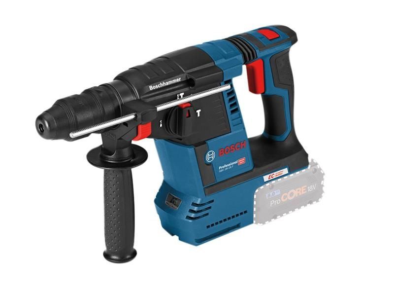 Bosch GBH 18V-26F SDS-Plus Rotary Hammer with quick-change chuck, this universal performer is perfect for daily use. Intended for drilling and chiselling in concrete, masonry, wood, and metal. KickBack Control and Electronic Precision Control (EPC) provide better tool handling and increased user protection. Its powerful motor delivers 2.6 J of impact energy for fast material removal rates.