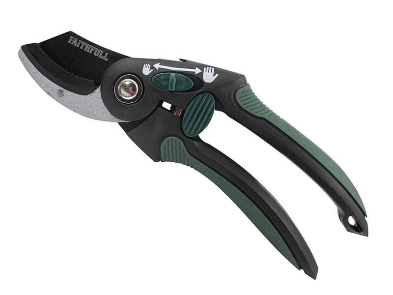 The Polypropylene and fibreglass handles feature a soft-grip that provides additional strength and comfort, with the added benefit of a two-position hand switch that adjusts the handles opening width to accommodate small or large hands, as well as thicker stems or branches.