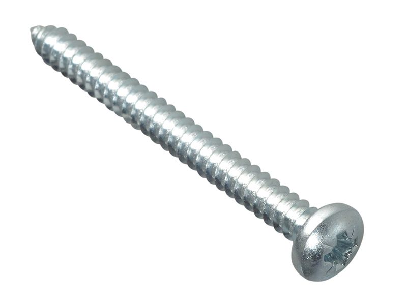 These Forgefix Pozidriv Self-Tapping Screws are zinc plated for increased resistance to corrosion. Their Pan Head, with a flat under head surface makes the screw ideal to lay flat on sheet material of all types, thus reducing deformation. The screws tap their own thread in a pre-drilled pilot hole, in sheet metal.