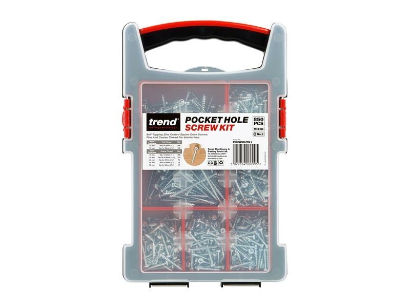 The Trend Pocket Hole Screw Selection contains a selection of square drive, self tapping, solid steel wood screws coated with Zinc to protect against rusting. A No.2 Robertsons square head provides maximum grip, ensuring the bit doesn’t slip whilst driving at an angle.