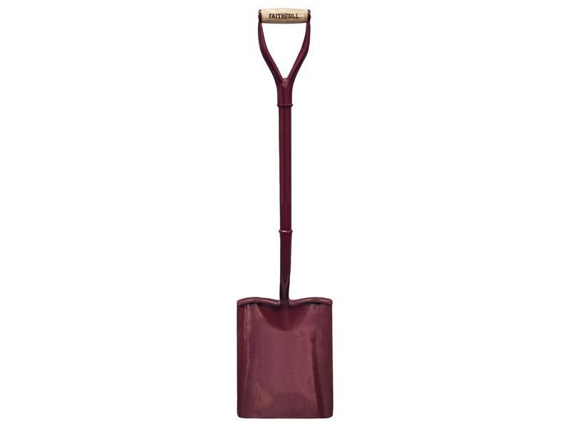 The Faithfull All-Steel Square Mouth Treaded Shovel made from manganese steel for strength, and fitted with a MYD type hilt with a wooden cross dowel for added comfort.