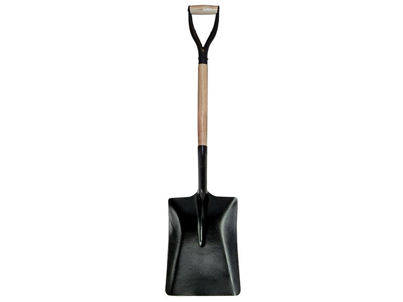 Faithfull square mouthed open socket shovel pressed from high quality manganese steel and fitted with a 700mm (28in) FSC European Ash shaft with an MYD hilt. Weatherproofed handle.