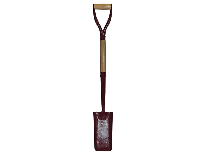 The Faithfull solid socket cable laying shovel has a solid forged head and is ideal for narrow trench work, such as to pipe and cable laying. Fitted with an ash shaft with an MYD hilt.