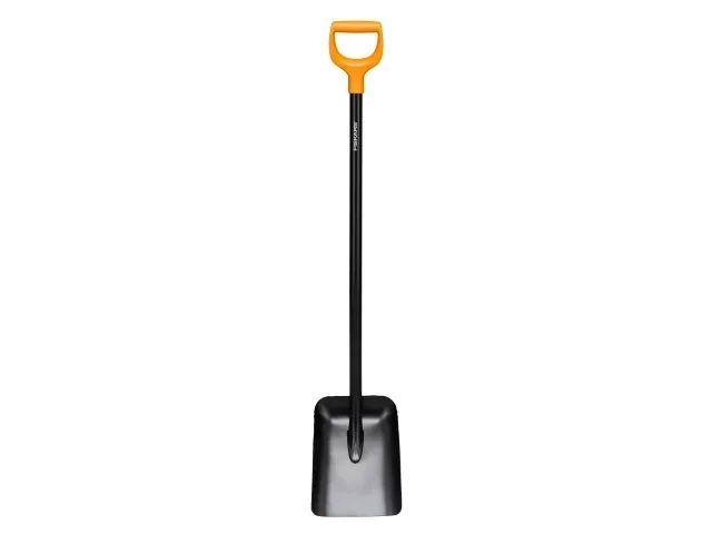 The Fiskars Solid™ Metal Shovel with a wide scoop for moving dirt, sand, gravel and other bulky materials. Its steel head is welded to a strong metal shaft for added durability. Fitted with a D-shaped handle fitting all hand sizes, with or without gloves.
