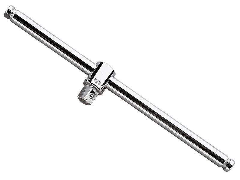 The Facom Sliding T-Handle has a 1/2in Drive to fit 1/2-inch sockets or extensions. The T bar slides and has a friction head which allows the bar to be used as a T or L handle. Grooves at either end of the bar prevent it from sliding out of the drive.