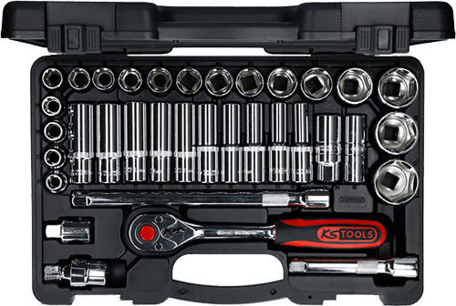 18 x Sockets 1/2": 10, 11, 12, 13, 14, 15, 16, 17, 18, 19, 20, 21, 22, 24, 27, 30, 32, 34 mm.