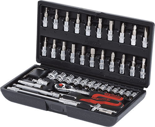 13 x Sockets 1/4": 4, 4.5, 5, 5.5, 6, 7, 8, 9, 10, 11, 12, 13, 14 mm.