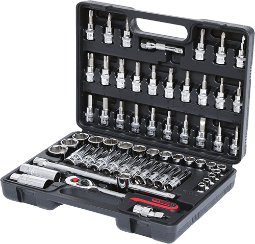 18 x Sockets 3/8": 6, 7, 8, 9, 10, 11, 12, 13, 14, 15, 16, 17, 18, 19, 20, 21, 22, 24 mm.