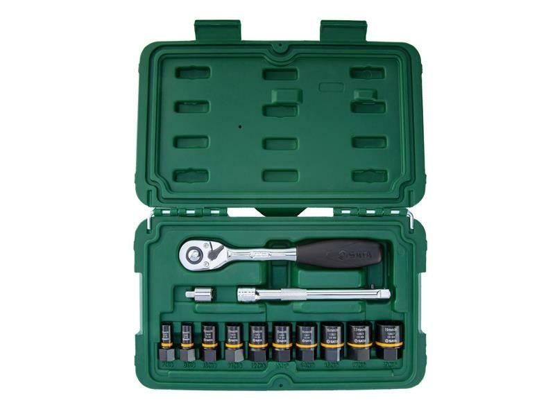 SATA BoltBiter fastener extraction tools are ideal for loosening rusted, rounded or stripped screw heads, nuts and bolts. The sockets have innovative tapered flutes that ensure easy seating onto a damaged fastener, and their hexagonal base allows use with impact guns, ratchets, wrenches or pliers.