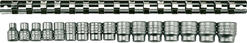 16 x Regular Sockets, 6 point: 7, 8, 9, 10, 11, 12, 13, 14, 15, 16, 17, 18, 19, 20, 21, 22 mm