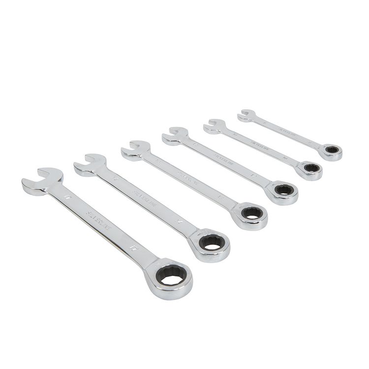 Hardened and tempered chrome vanadium metric spanners with mirror-polished finish. Chrome plated for corrosion resistance. 5° ratchet action. Provides easy access in tight spaces. Includes 8, 10, 12, 13, 14 and 17mm spanners in tough nylon storage roll.