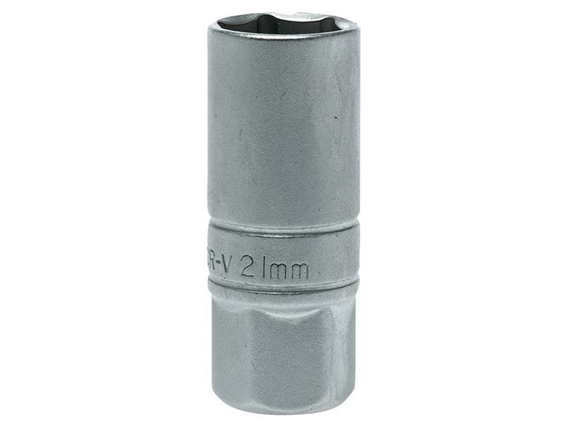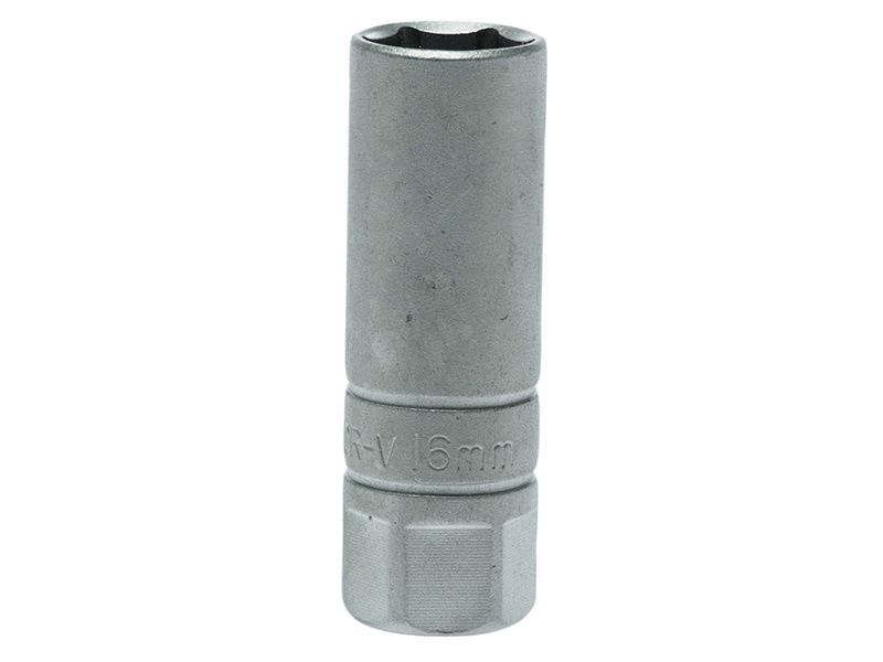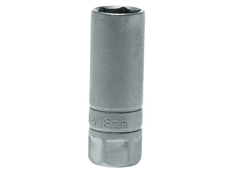 1/2in Square Drive 6-Point Spark Plug Socket made from chrome vanadium steel with a satin finish and with a rubber insert.