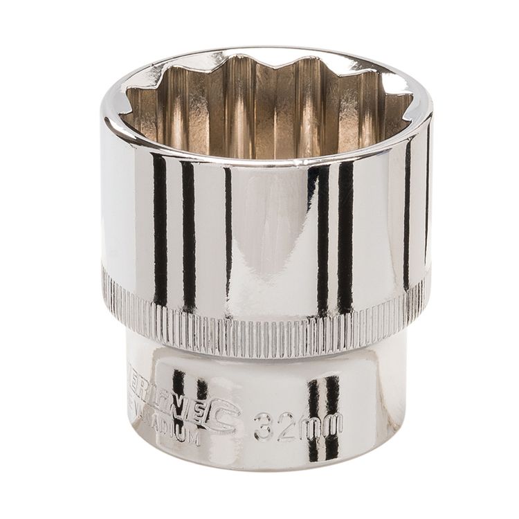 The Silverline 1/2" Drive 12pt Metric Socket offers precision and reliability for fastening tasks. Cold-forged, hardened, and tempered chrome vanadium steel ensures long-lasting performance, while a fully polished and nickel-chrome finish provides corrosion resistance.