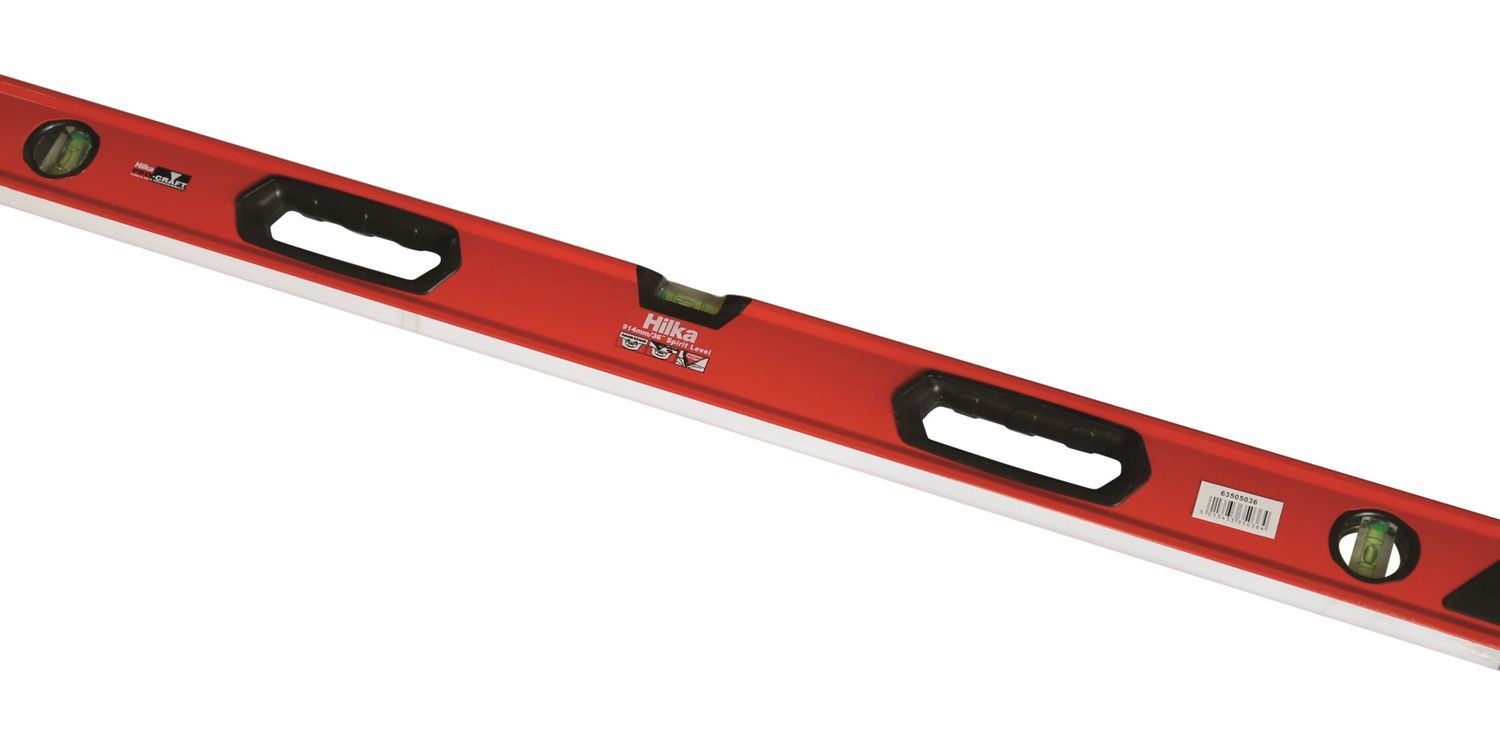 Heavy duty aluminium frame for greater strength & durability with sturdy shock proof vials accurate to 0.5mm per meter. Features 2 vertical and 1 horizontal vial with rubber anti slip end caps for added protection. Includes two large soft grip handles for user comfort.