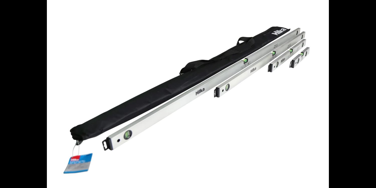 Set contains 4 high quality Aluminium levels in a carry bag for safe keeping. Aluminium frame with painted finish for greater strength & durability. Sturdy shock proof vials accurate to 1mm per meter with 2 vertical and 1 horizontal. Rubber anti slip end caps for added protection. Contains: 12", 24", 48", 72" levels.