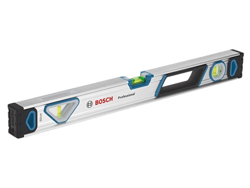 The Bosch Professional Magnetic Spirit Level has a solid aluminium body, block vials, and shock-resistant end caps for long service life. They offer precise and easy visibility from multiple positions thanks to magnified center vials, UV-resistant vial liquid, and metal vial rings.