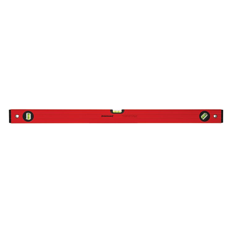 Powder-coated extruded aluminium construction (1.2mm thick). Milled top and bottom faces for enhanced accuracy. Ribbed sides, protective end caps and hanging hole. Highly visible, UV-resistant 45°, 90° and 180° vials. Accurate to 1mm/m.