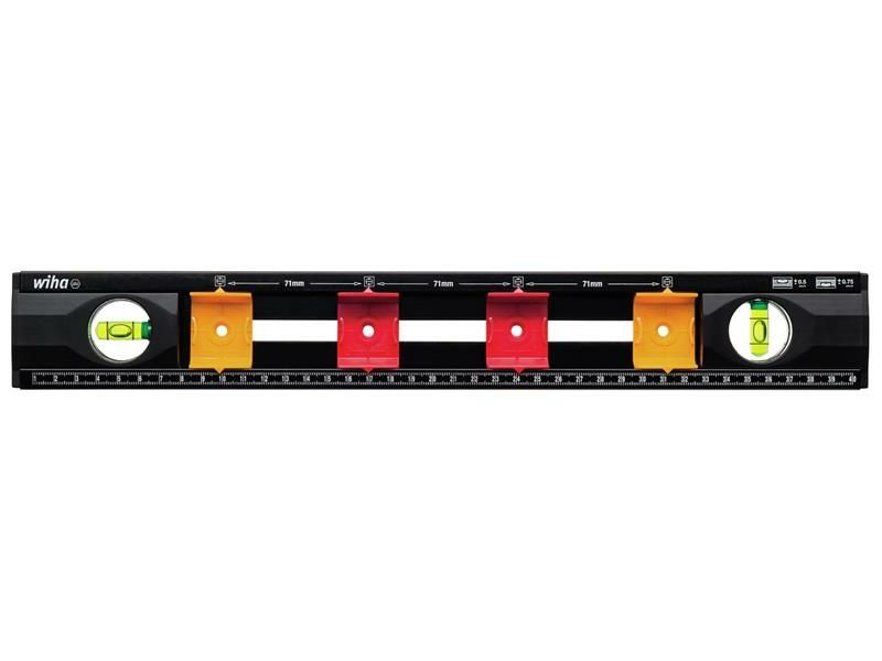 The Wiha Electrician's Spirit Level is built for measuring and marking vertical and horizontal distances between flush boxes. End-to-end casing allows electricians to mark out lines without needing to stop. The ingeniously positioned linear scales ensure users can measure in comfort, even when viewing from above. Both level bubbles can be seen easily, even from an acute angle.