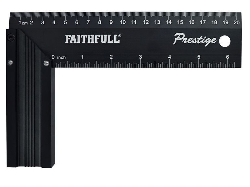 The Faithfull Prestige Try Square is used for marking out 90° angles, with ruled metric and imperial markings. Manufactured from aluminium and CNC machined for high accuracy. Black anodised for corrosion and scratch protection. Laser engraved gauge for clear reading.