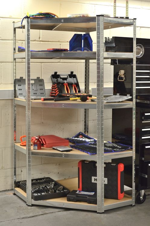 Quick and easy to assemble boltless shelving system making it ideal for garage, workshop, office and utility room. Sturdy 5 shelf design with 175kg shelf capacity and a galvanized finish with curved edges. Freestanding unit can also be assembled as a workbench with plastic feet for added floor protection. Assembled dimensions: 1800 x 900 x 400mm.