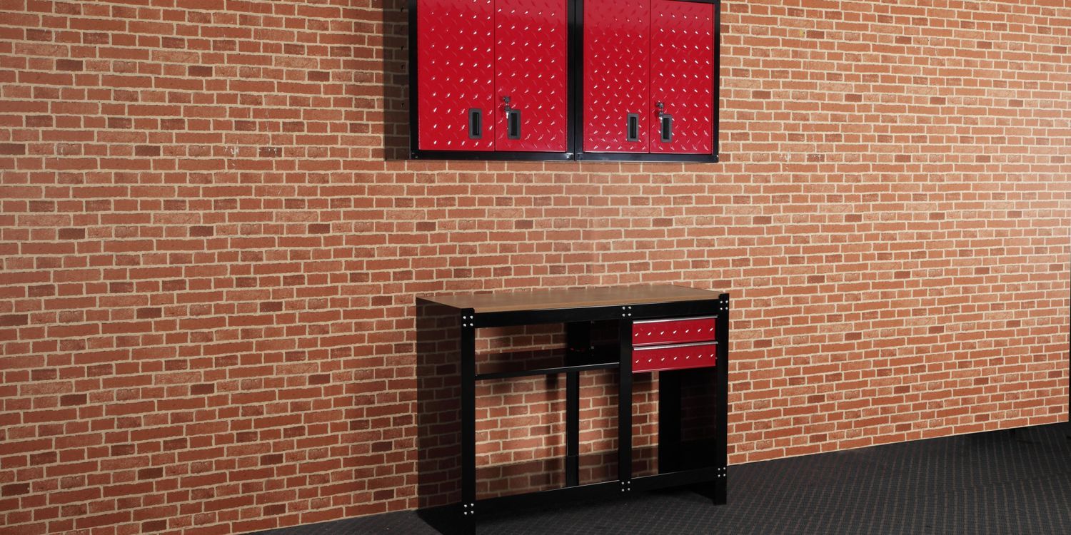 The Hilka 3 pce Garage Storage Solution is perfect to kit out a fully operational workshop. Perfect for converting the garage or similar area into a usable workshop space & organising tools. The wall units have keyed cylinder lock for added security, heavy duty steel construction for durability & easy to assemble. Other components sold separately such as an additional wall cabinet, tall cabinet and mobile cabinet can be added later as required. Colour makes this solution perfect to sit alongside an existing Hilka red heavy duty or black professional tool storage. Set contains: 1x Heavy Duty 2 Drawer Work Bench and 2x Garage Wall Unit