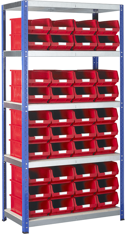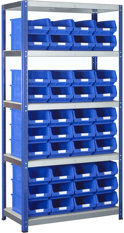 Boltless heavy duty hand loaded shelving system.