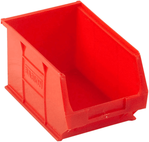 Dimensions (D x W x H): 240 x 150 x 132 mm (9.5" x 6" x 5"). Sturdy polyethylene bins with label holders. Compatible with most standard shelving systems.