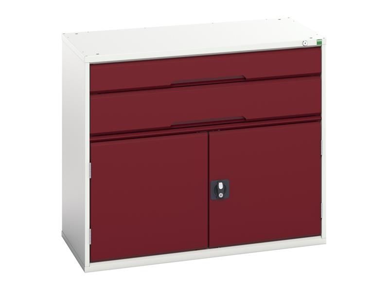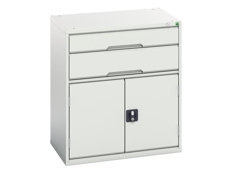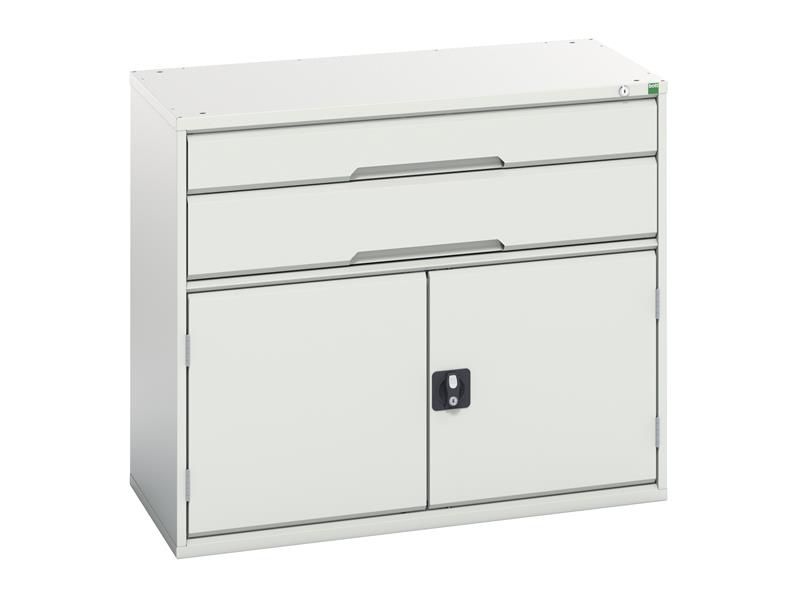Bott Verso 2 Drawer + Cupboard has a robust, fully welded steel housing finished with a durable powder coat paint. Its 2 drawers have been designed to withstand the rigours of industrial use (75kg U.D.L. capacity). Fitted with 100% extension roller bearing slides for smooth operation and easy access. The cupboard has 1 shelf.