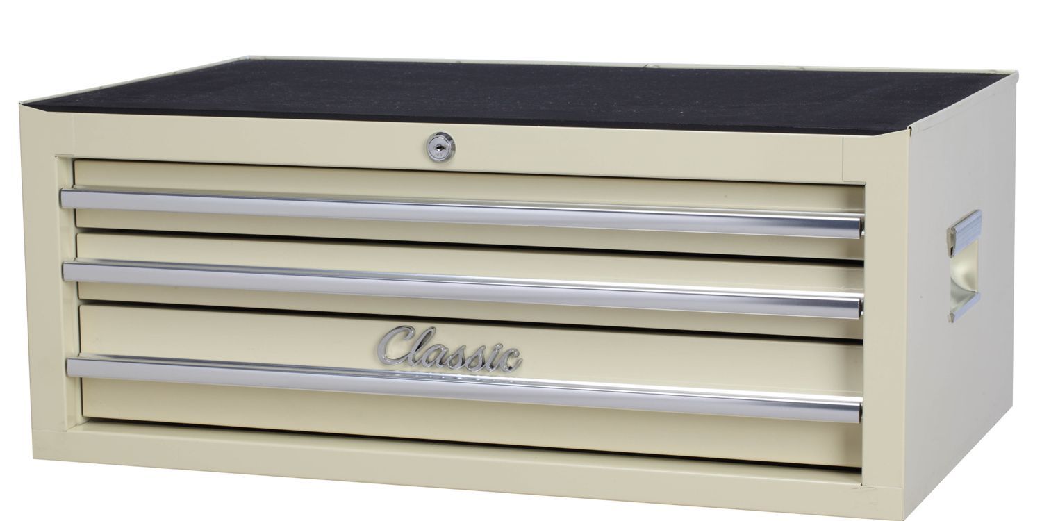 The Classic 26" 3-Drawer Add-On Chest is a versatile storage solution designed for car enthusiasts and professionals. With lockable ball-bearing drawer slides for smooth, secure operation, it provides ample space for tools.