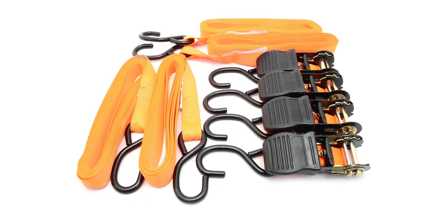 Adjusts from 1.2m to 4.5m, breaking strength 450kg, safe working capacity 225kg. Weather resistant nylon webbing, steel ratchet with quick release mechanism.