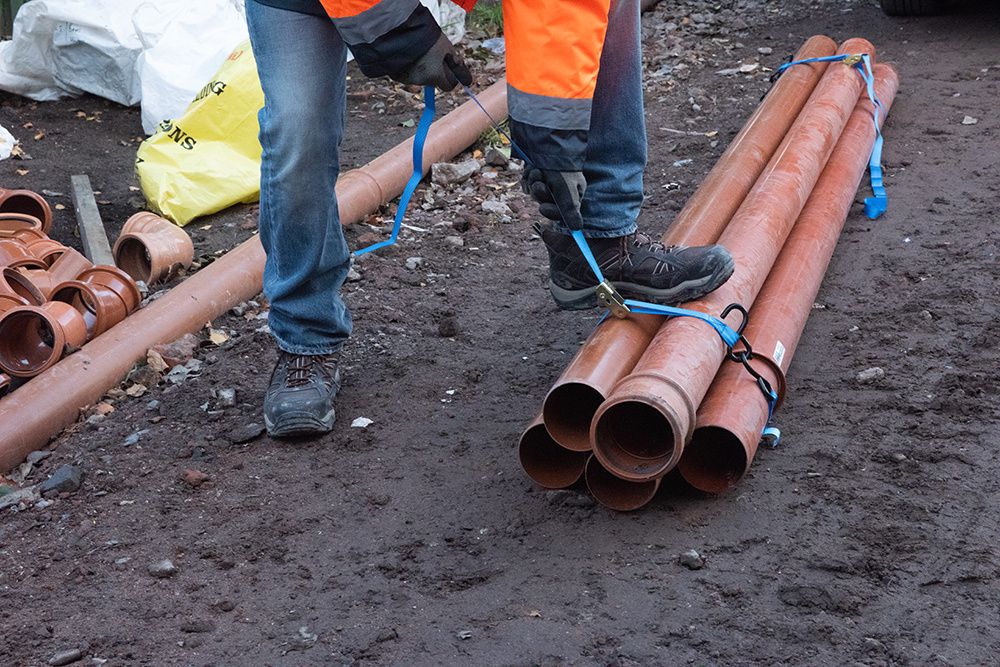 Durable weather-resistant polyester webbing with stitched reinforcement. Automatic locking ratchet action secures items quickly and easily. Quick-release high-tension handle. S-hook ends. Resistant to cutting and abrasions. Suitable for tying down large, bulky and awkwardly-shaped loads during transit. Conforms to BSEN12195-2:2000.