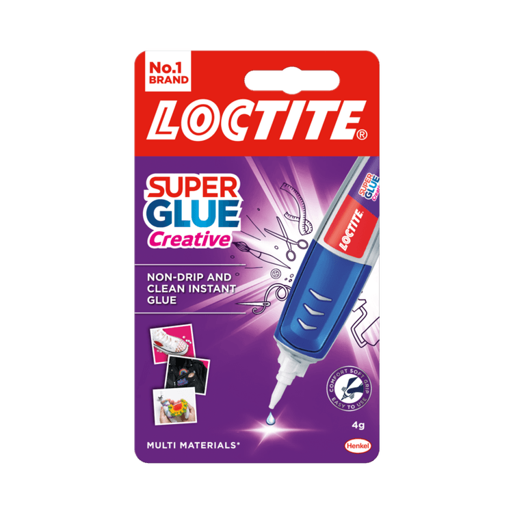 • Say goodbye to glue spills, sticky fingers and messy DIY jobs with the Loctite Super Glue Perfect Pen. Designed for accurate, no-mess application, the pen's precision tip, rubber grips and fast-setting time keep bonding tasks easy. Simply press lightly on the pen for drop-by-drop application - gluing is now as easy as writing! Some ordinary glues can leak, but the gel formula and non-drip system ensure that this glue won't.
