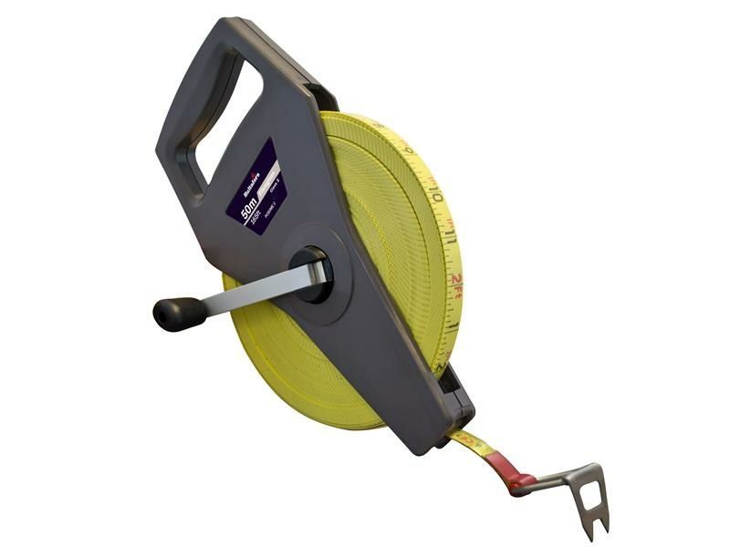 The Hultafors Ranger Tape is a heavy-duty, open frame surveyor's tape with a spade handle grip, which is ultrasonically welded for added strength. It has a PVC overcoated, fibreglass blade that is electronically non-conductive when dry, corrosion-resistant and resistant to breakage. Features both metric and imperial measurements.