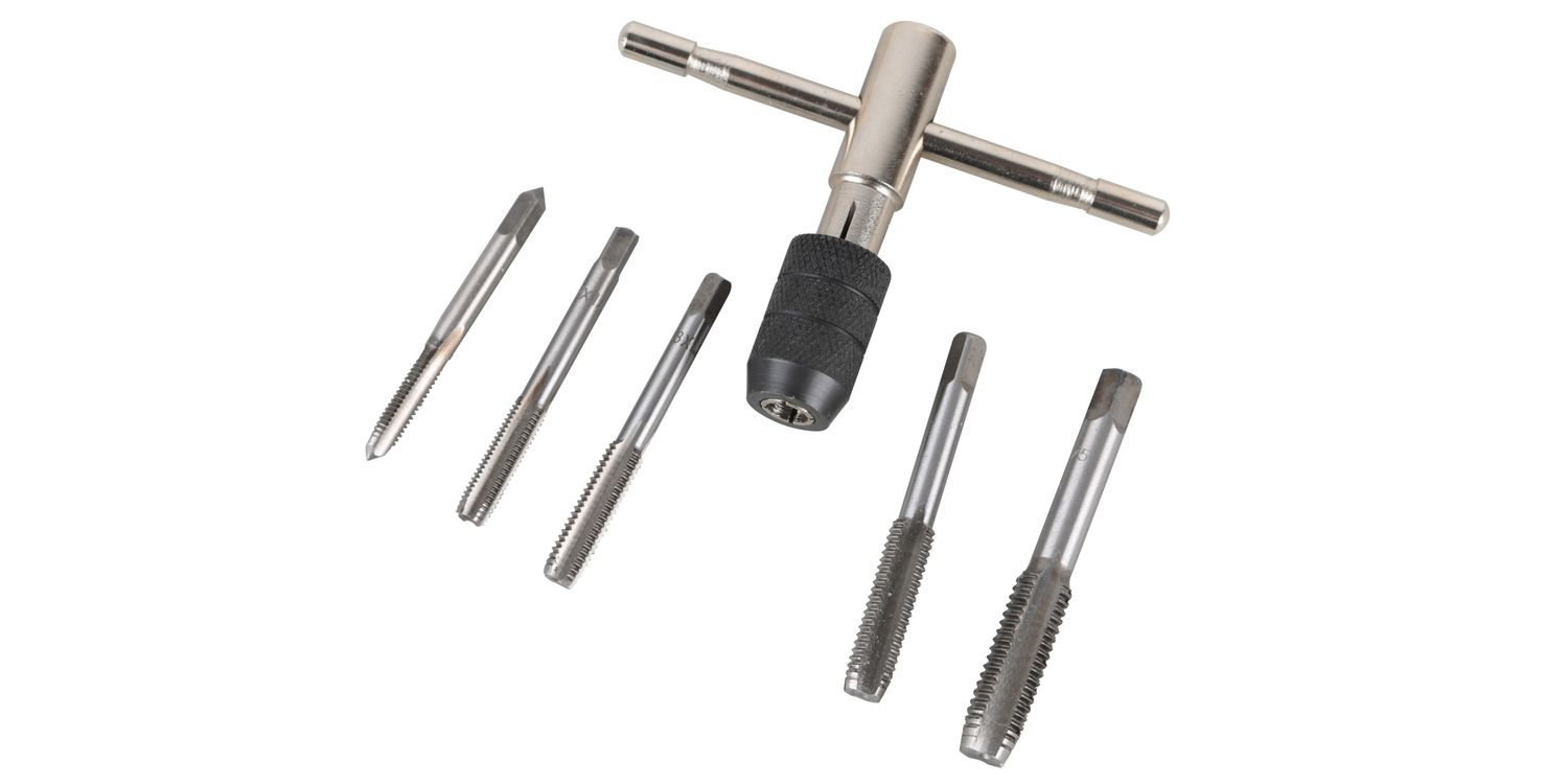 High quality alloy steel set for increased strength and durability. Suitable for cleaning, cutting new or chasing lightly damaged threads. Includes a T shape holder to allow for easy use. Sizes: M6, M7, M8, M10, M12.