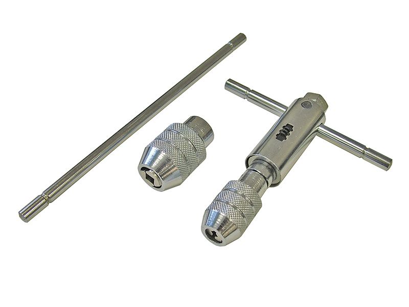 Faithfull ratcheting tap wrench precisely constructed with an ergonomically designed sliding 'T' handle for fitting into tight spaces with ease.