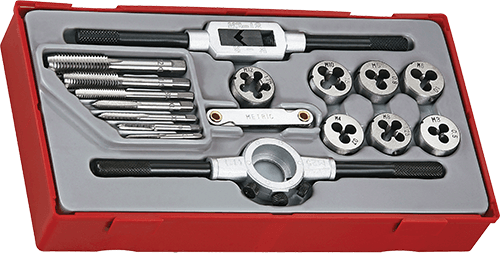 7 x Metric Dies: 3 x 0.5, 4 x 0.7, 5 x 0.8, 6 x 1.0, 8 x 1.25, 10 x 1.5, 12 mm x 1.75.