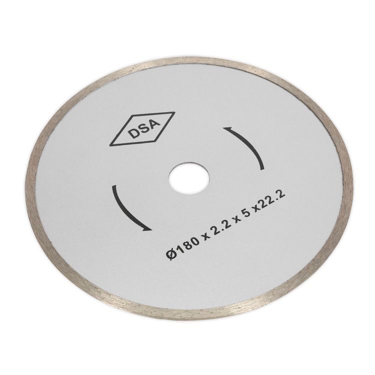 The Sealey TC180B/04 Blade has a continuous rimmed diamond cutting blade and a Ø22mm mounting bore.