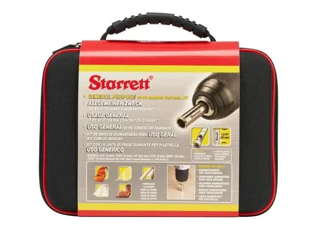 The Starrett KD06041 Diamond Tile Drill Bit Set is ideal for drilling small-diameter holes in many non-metallic materials. The diamond-tipped edge is created from a uniform coating of synthetic diamond grit bonded to a durable steel platform. Ensuring exceptional performance at high speeds and effective cutting action on materials such as brick, non-hardened glass, ceramic, tiles, and stone. They consistently deliver clean, accurate cuts and offer an extended product life well beyond conventional tools. Supplied in a handy carry case. Contains:
