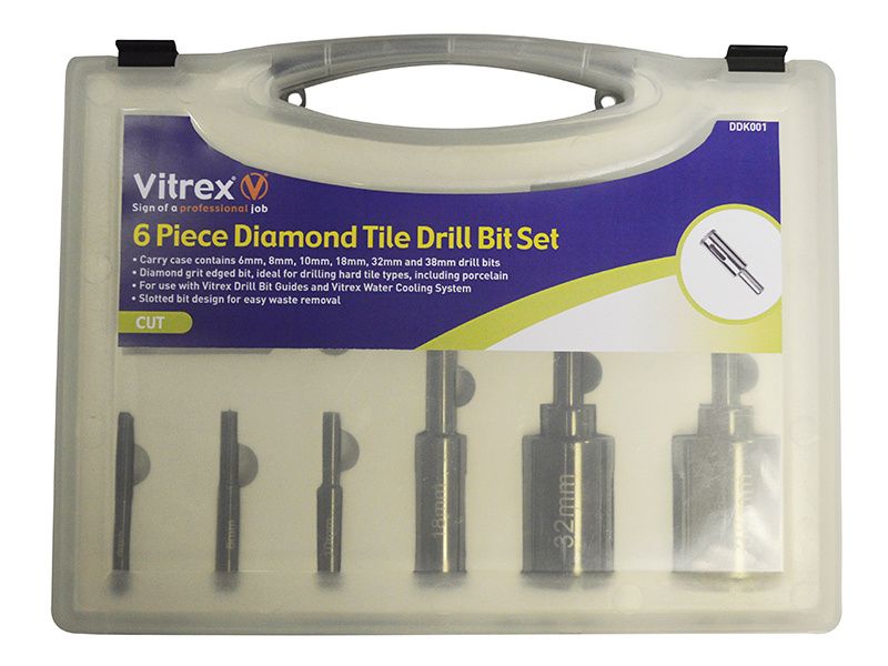 The Vitrex Diamond Grit Edged Drill Bits are ideal for drilling hard tiles. The slotted bit design makes for easy waste removal.