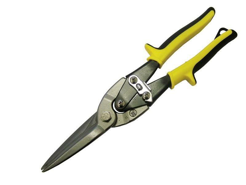 The Faithfull Multi-Purpose Compound Power Cut Snips ;feature polished, solid forged blades with serrated edges to help prevent sheet material slipping when being cut. The extra long blades make them ideal for cutting sheet steel and other non-ferrous materials and are also perfect for cutting bulky products such as vinyl, plastic and rubber.