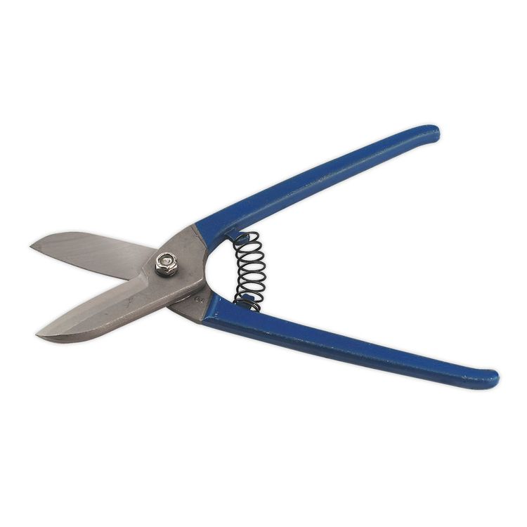Straight tinman's snips are ideal for cutting 'straight' lines. The straight jaws act as a guide, helping to cut in a straight line, making these AK6910 Tinman's Shears from Sealey perfect for snips. This tool features a one-piece, drop-forged blade with spring-loaded handles suitable for cutting thing gauge ferrous and non-ferrous metal sheets.