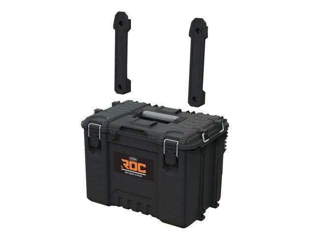 The Keter Roc Pro Gear 2.0 Cart comprises of a fully detachable wheelbase and telescopic handle. So you can fully separate your XL Toolbox from the cart for easier transport, and change out your base unit in just seconds, allowing easy transition from workshop to van to jobsite.