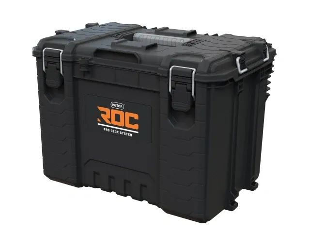 The Keter Roc Pro Gear 2.0 XL Toolbox features premium, professional functionality, features which provide the worksite with next-level convenience. It can withstand the rough-and-tumble conditions of any shop or site, thanks to its durable latches and metal-hinged lid for full opening. Allows work with open lid, whether stacked or wall mounted.