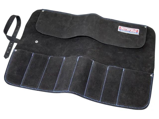 This Faithfull Chisel Roll is manufactured from high-quality leather. It has 8 pockets designed for storing chisels and other small tools. Fitted with a long ribbon tie for reliable fastening.